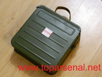 PKMS emty ammo box 7.62x54R for 200 round belt original USSR. Made in Izhevsk, Russia. Authentic made on Izhmash, Russia. Good as new.