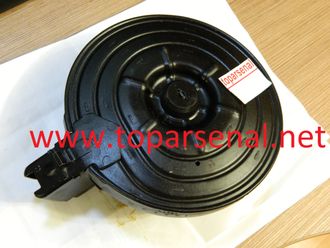 RPK original 75 round 7.62x39 steel Drum magazine. From an Army storage.